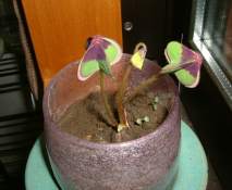 私が窓辺に置いておいた時は、2本くらいしか出ていなかった葉(新しいのが一本伸びてくると、既にある一本が枯れたりする)が、母に渡した数日後には20倍くらいになってました。さすがです母…。