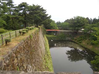 向こうの赤い橋は、何か偉い人が鶴ヶ城に来た時渡った橋らしいよ。