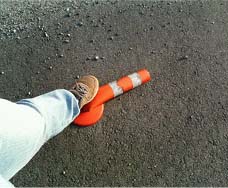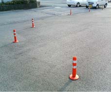 店の前の通りが、道路拡張工事が終わってなくて、今、半分塞いである状態なんですけど、コーンじゃなくて、地面に埋め込んである、ポール? みたいな、正式名称知りませんが…。膝下くらいの低さの。