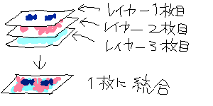 CGで絵を描く時は、メインと背景を別々の画面に描いたりするんだヨ! この一枚一枚の画面をレイヤーと言って、最後に全部を一枚に合わせてイラストになるわけさ! ゴイスな絵を描く人は、一枚のイラストに30枚とか40枚とかのレイヤーを作るという噂だよ!)