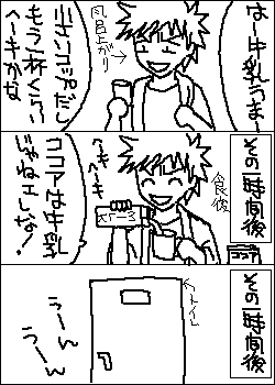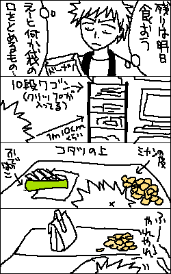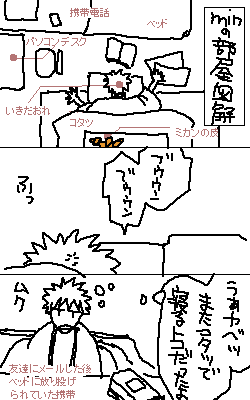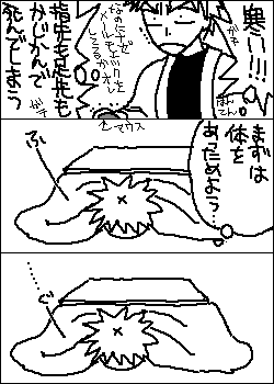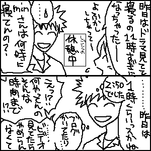 という日記を昨日描こうと思ってたのにまたもやコタツで夜を明かしてしまったので(母がおニューの布団を買ってくれて、これまでの倍くらいの厚さ(大げさ)のふかふか布団が目の前にあったというのに!)今日描いた。