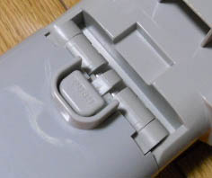 「PUSH」て書いてあるの解るかなあ。押しても外すことも畳むこともできない謎のボタン……